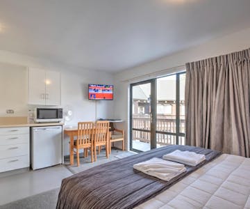 Our Studio Units are fully self-contained, featuring a cozy queen-sized bed and an ensuite bathroom. Enjoy the convenience of a well-equipped kitchen, perfect for preparing meals. Each unit includes free Wi-Fi (with conditions), a DVD player, telephone, and a pedestal fan for your comfort. Relax with a television and indulge in complimentary milk, teas, coffees, and hot chocolate. Stay warm with both a wall heater and a standalone radiator heater.